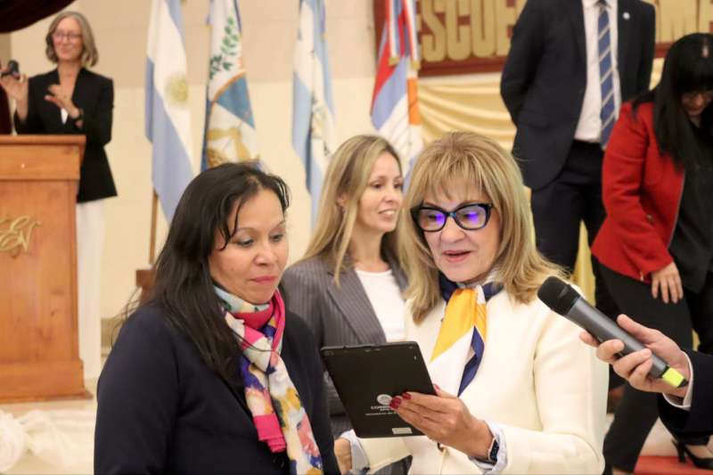 Durante el acto de esta mañana se realizó la entrega de tablets oficiales del Ministerio destinadas al cuerpo docente y administrativo. Estos dispositivos estarán configurados para el uso exclusivo de la plataforma de Gestión Educativa, asegurando un acceso simple y uniforme. La entrega fue acompañada de una breve presentación institucional a cargo de la Ministra.