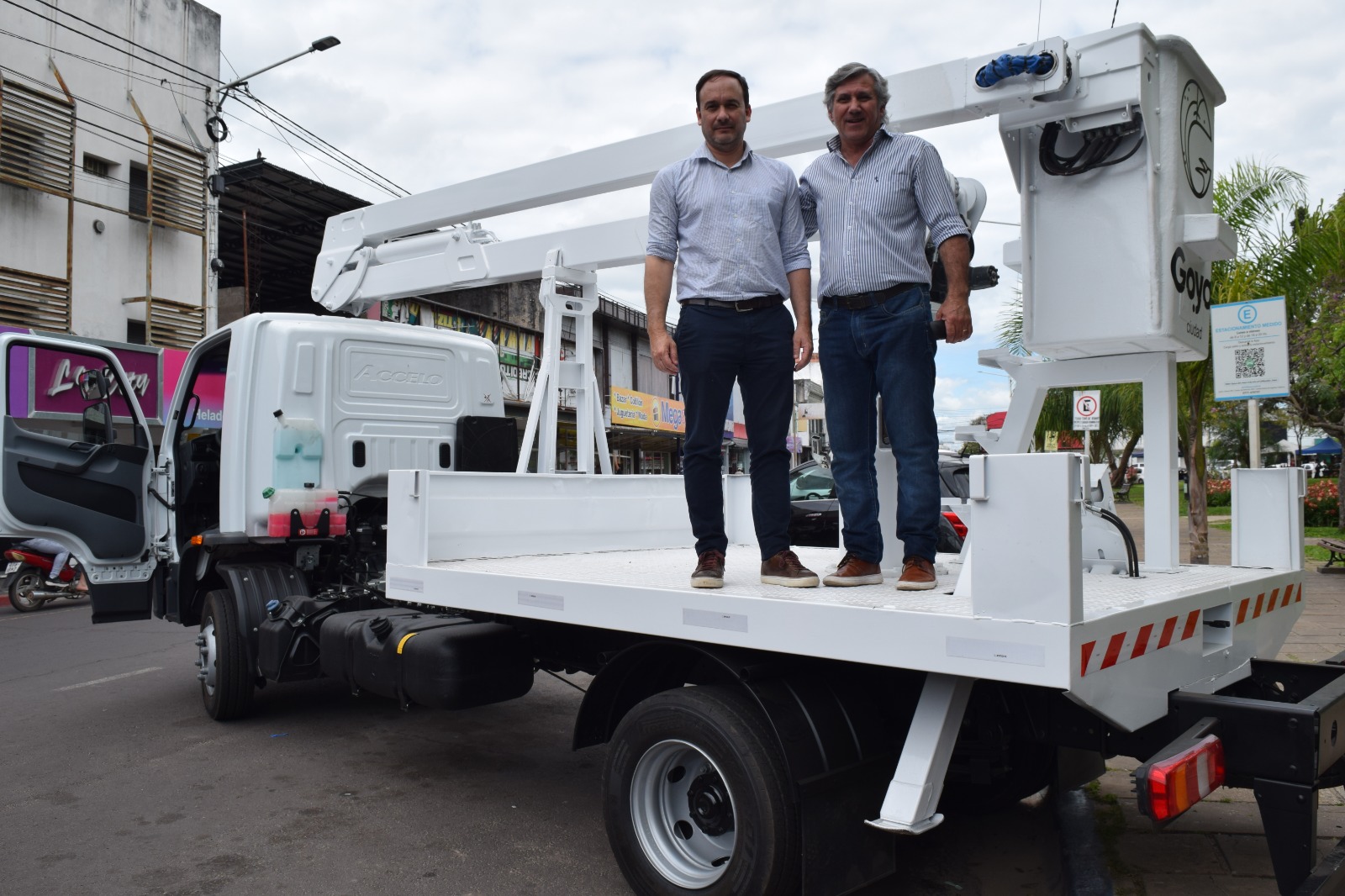 El intendente de Goya, Mariano Hormaechea, presentó un nuevo vehículo con hidrogrúa destinado al área de Luminotecnia. Se trata de una unidad con un alcance de 9 metros, que se integrará a la flota municipal para fortalecer el mantenimiento del alumbrado público y mejorar la atención a los vecinos.