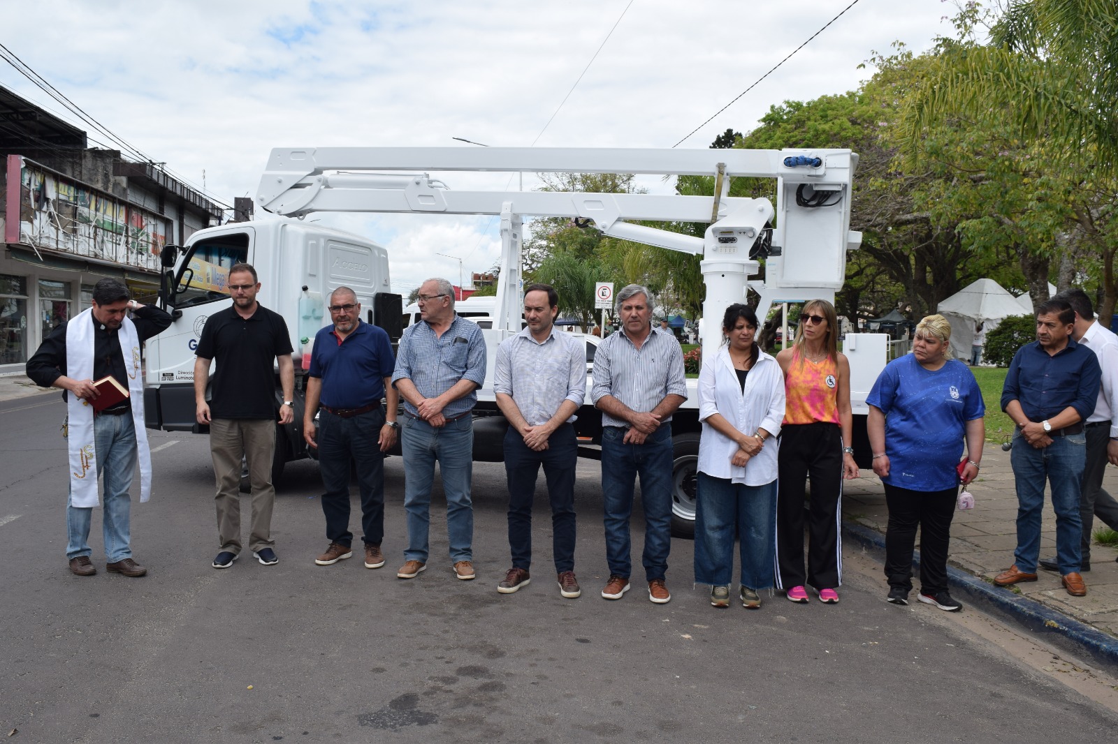 “En primer lugar, quiero agradecer al padre Ariel por la bendición de esta nueva herramienta tan importante para Luminotecnia. Esto forma parte de un esquema de trabajo en el que venimos invirtiendo en distintos sectores: Tránsito, Inspección, Obras Públicas, y ahora este hidroelevador que se suma a la flota que ya cuenta con tres unidades”, expresó.