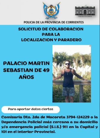 La Comisaría de Distrito Segunda de Mocoretá, dependiente de la Policía de Corrientes, difundió la solicitud oficial de colaboración a medios de comunicación de todo el país, con el objetivo de ampliar el alcance de la búsqueda y sumar información que permita ubicarlo.