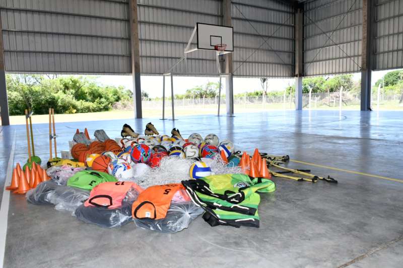Tras el acto inaugural de la pavimentación, el mandatario provincial inauguró el Polideportivo Municipal de Santa Ana y destacó que la obra forma parte de una política que busca dotar a cada comunidad de un espacio deportivo cubierto. Además, se procedió a la entrega de elementos deportivos.