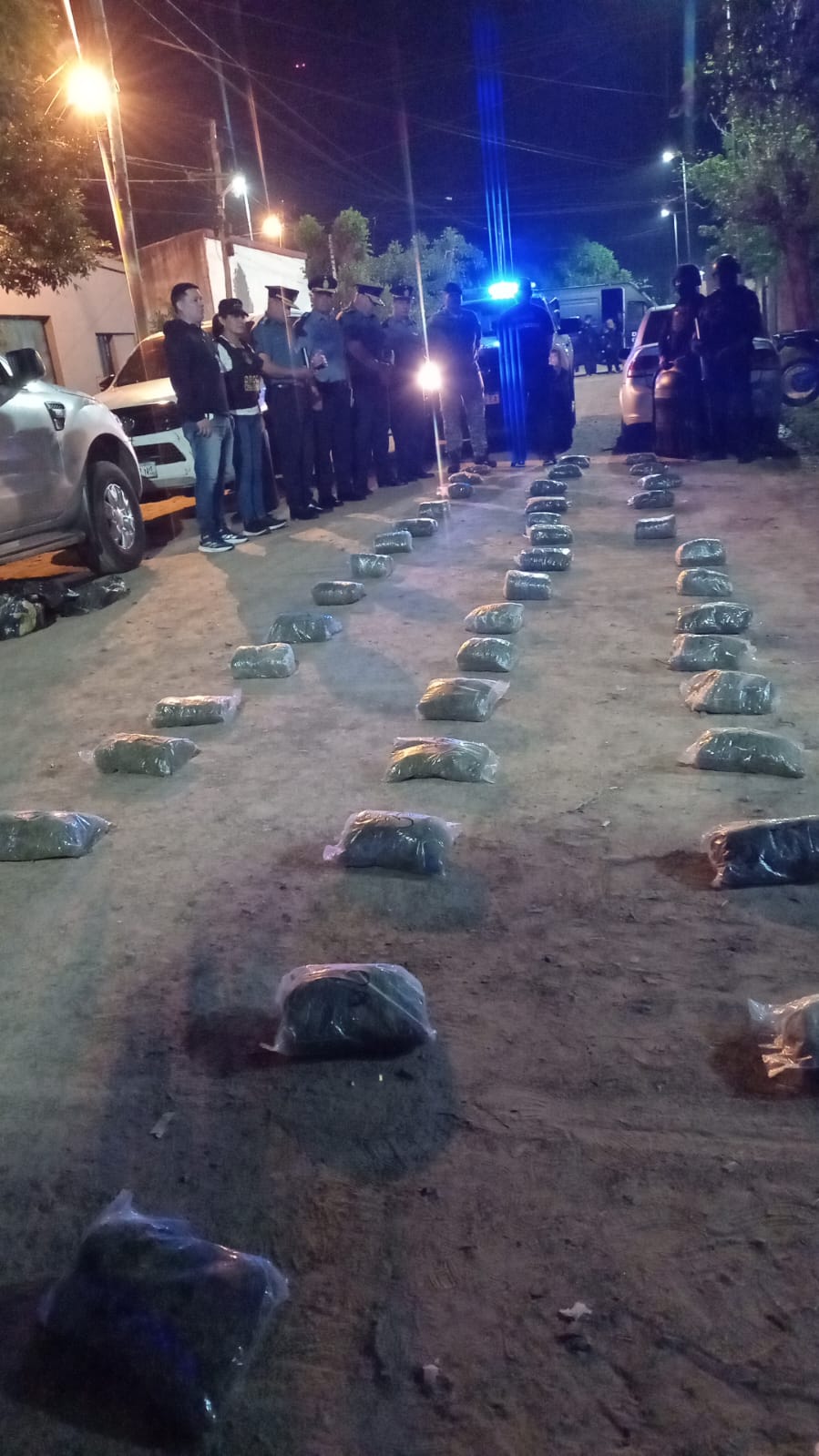 Con autorización judicial, los efectivos procedieron luego al secuestro preventivo de cinco bultos, en cuyo interior se hallaron 65 paquetes con una sustancia vegetal similar a la marihuana.