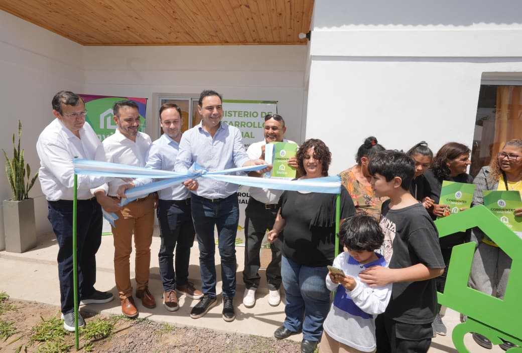El gobernador Gustavo Valdés encabezó la entrega de 10 viviendas completamente amuebladas del programa provincial Oñondivé en la zona de El Remanso, al norte de la ciudad de Goya, donde también anunció la construcción de otras 10 unidades habitacionales y la recuperación integral de la costa afectada por desmoronamientos del río Paraná.