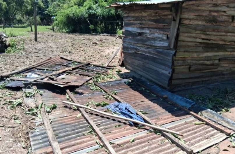 La localidad de Mburucuyá también sufrió graves consecuencias por el temporal. Vecinos del paraje Manantiales relataron que una “cola de tornado” arrasó con árboles y provocó la voladura de techos en al menos nueve viviendas.
