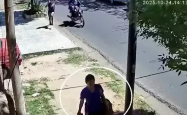 El forcejeo fue brutal: el ladrón tironeó varias veces hasta hacerla caer al suelo, donde la revolcó mientras le quitaba sus pertenencias. En el video —que se viralizó rápidamente— se ve cómo Agustina grita desesperadamente “¡Auxilio!” mientras el delincuente huye corriendo y sube nuevamente a la moto conducida por su cómplice.