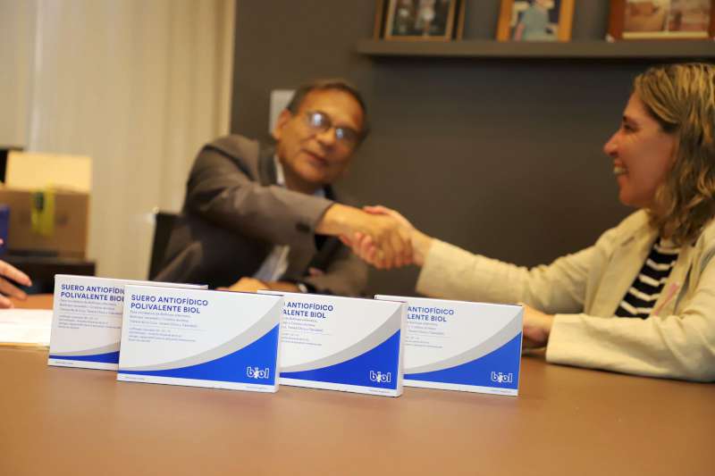 “Este convenio venimos firmando de manera periódica y, por el cual, el Ministerio de Salud Pública recibe suero antiofídico a través del Ministerio de Turismo. Es elaborado por CEPSAN que, por el convenio con una droguería, esa entidad consigue el veneno de los ofidios y envía a la empresa que devuelve con el suero antiofídico elaborado a Turismo y, ellos a nosotros. A través del área de Angelina Bobadilla, Epidemiología, el Ministerio se compromete en la distribución en las instituciones de Salud Pública”, dijo el titular de la cartera sanitaria.