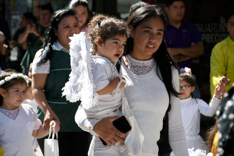 La directora del CDI municipal Nº1, Mercedes Sena, señaló: “Estamos recorriendo la calle Junín, como es tradición, para mantener la costumbre de Ángeles Somos, respetando siempre la religión de cada chico y de cada familia”.