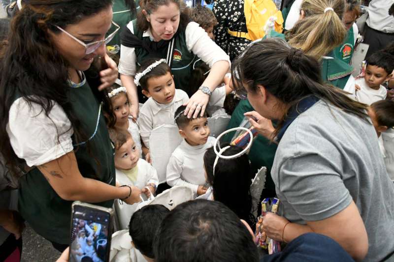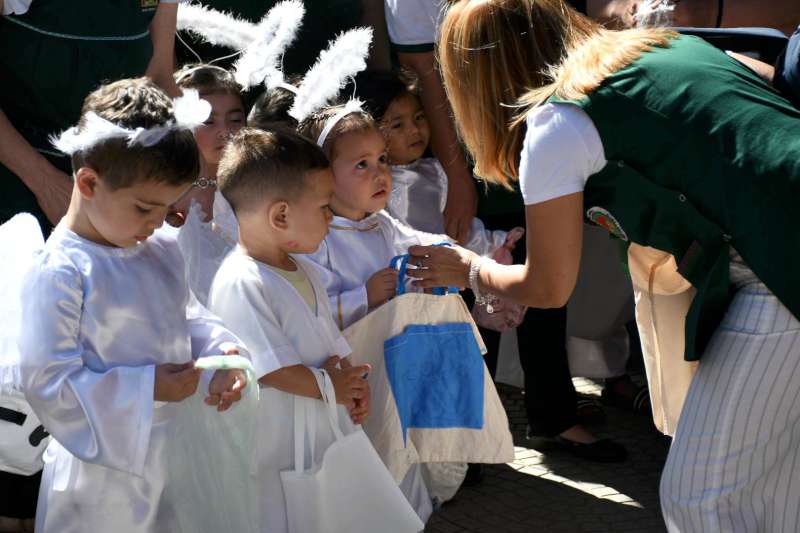 Los pequeños, acompañados de sus “seños”, padres y otros familiares, participaron de la propuesta vestidos de ángeles, solicitando bendiciones y recibiendo a cambio colaciones, consistentes en golosinas varias.