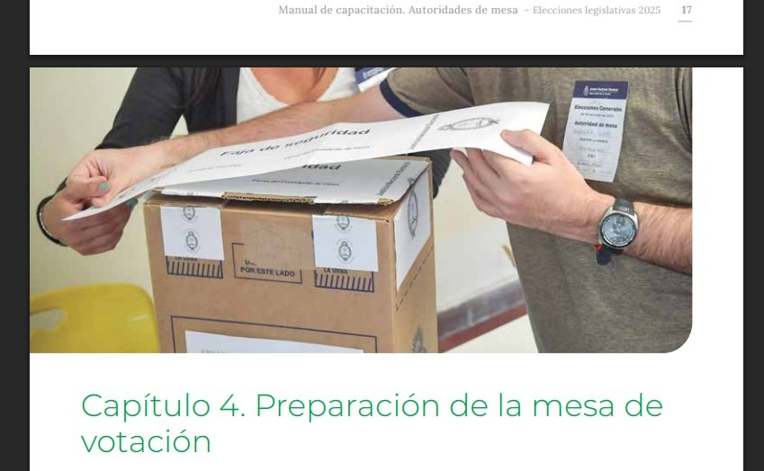 Captura de pantalla tomada el 30 de octubre de 2025 del Manual de capacitación para las autoridades de mesa