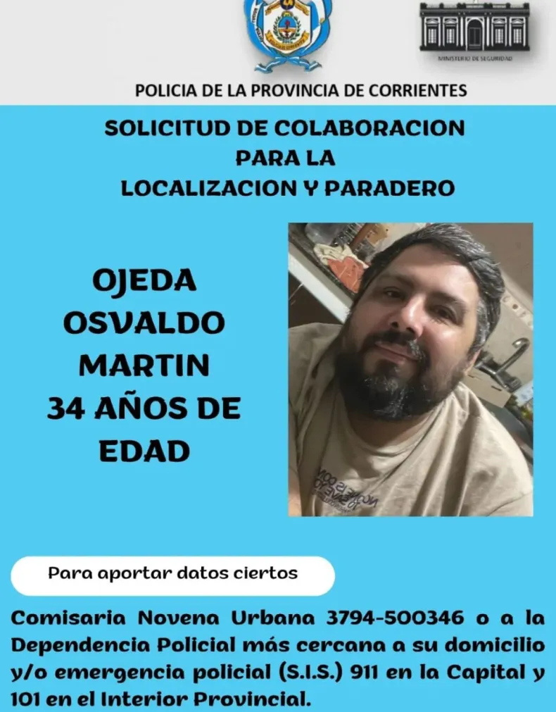 La Policía de Corrientes mantiene un intenso operativo para dar con el paradero de Osvaldo Martín Ojeda, un empresario de 34 años dedicado a la organización de eventos sociales, quien se encuentra desaparecido desde el 5 de noviembre. En paralelo, la Justicia ordenó su captura nacional, tras acumularse al menos diez denuncias por presuntas estafas millonarias vinculadas a su firma “Food Lab, catering y eventos”.