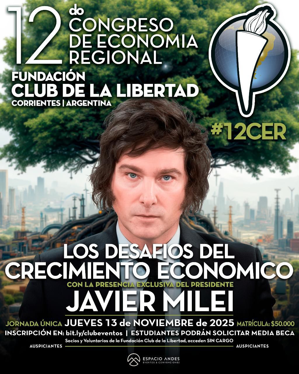 El presidente Javier Milei llega este miércoles a Corrientes para convertirse en el principal orador del 12° Congreso de Economía Regional del Club de la Libertad, un evento del que participa desde su primera edición en 2014 y que lo recibió en algunos de sus momentos políticos más duros y más resonantes.