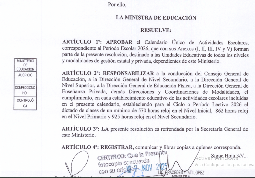 Uno de los puntos más relevantes de la resolución es la incorporación formal del día sábado como “laborable”, destinado a actividades obligatorias que no necesariamente implican clases tradicionales.
