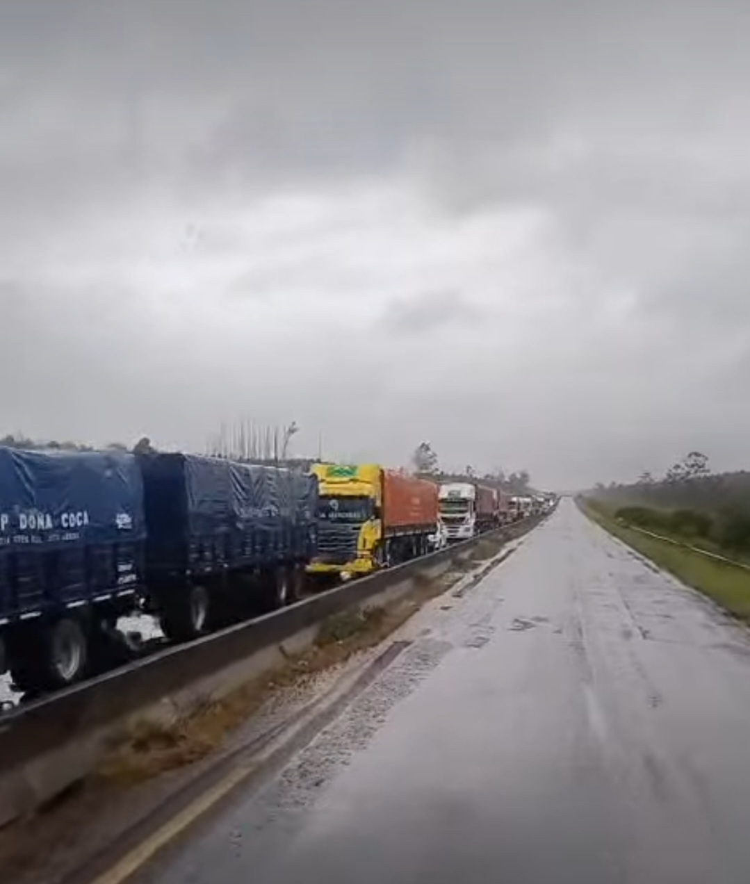 Como consecuencia del vuelco, se generó una extensa fila de camiones y vehículos particulares que permanecen detenidos o avanzan de manera intermitente, a la espera de que finalicen las tareas de asistencia y limpieza de la calzada.