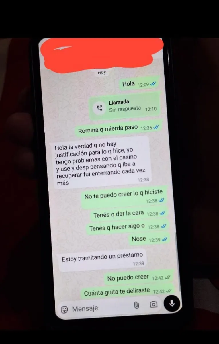 Para ese momento, Enríquez ya no respondía llamados ni mensajes. Poco después, a través de un mensaje de WhatsApp, admitió haber perdido el dinero en el casino y reconoció su adicción al juego. “No hay justificación para lo que hice. Pensé que iba a recuperar y terminé enterrándome cada vez más”, expresó. Luego salió de los grupos de WhatsApp y, hasta el lunes, seguía sin aparecer.