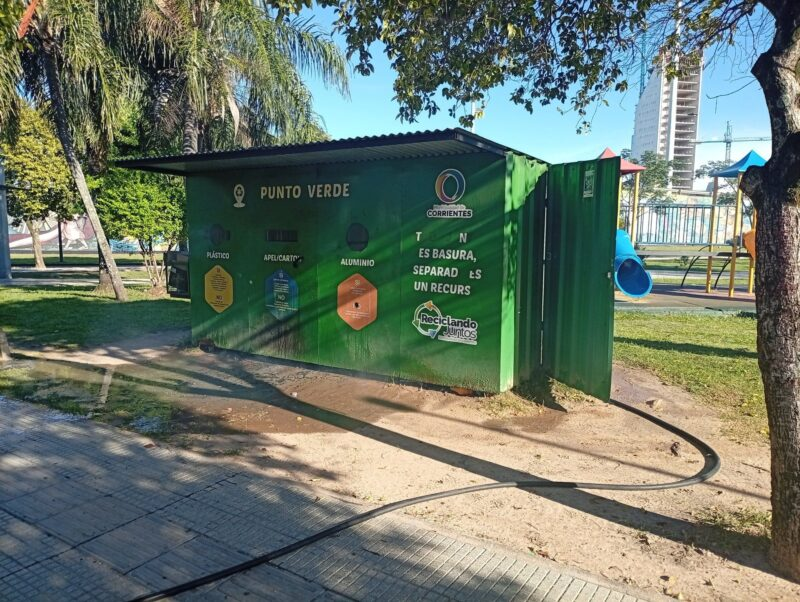 Los Puntos Verdes forman parte de una política ambiental destinada a fomentar la separación de residuos en origen y el reciclaje de papel, cartón, plástico y aluminio. Estas estructuras están distribuidas en distintos sectores de la ciudad de Corrientes con el objetivo de promover prácticas sustentables entre los vecinos.