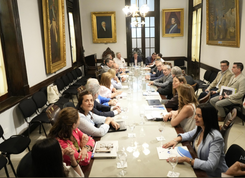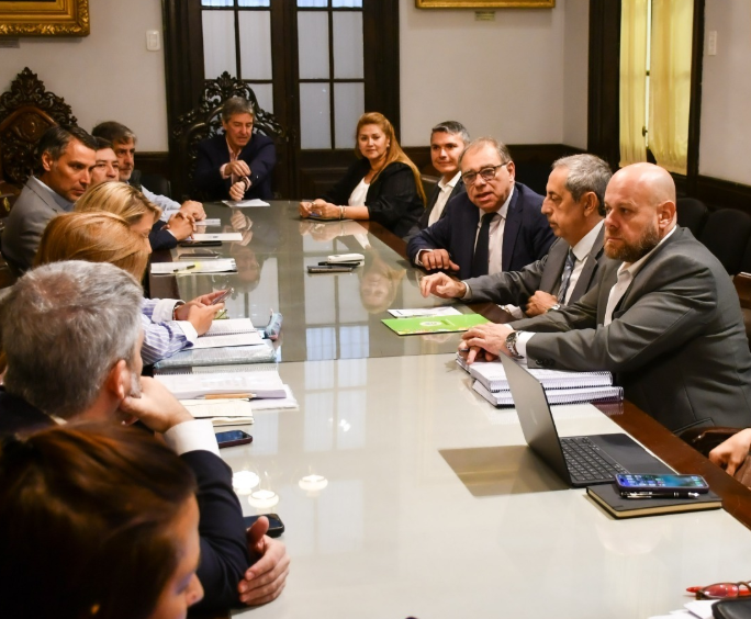 La reunión se llevó a cabo pasadas las 9 en el Salón de Acuerdos “Raúl Alfonsín” del Poder Legislativo, bajo la presidencia del titular de la Cámara de Diputados, Eduardo Tassano.
