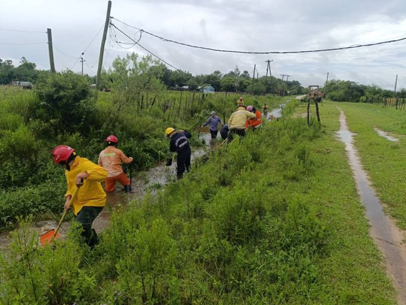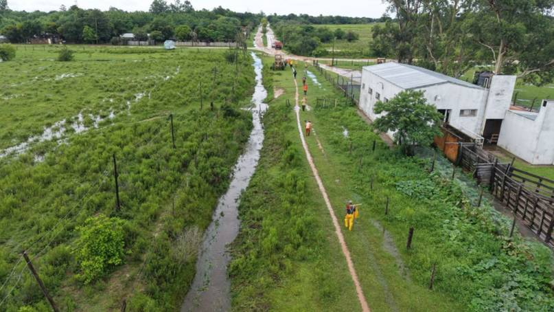 Las tareas se concentran principalmente en la limpieza de zanjas, cunetas y sectores anegados, con el objetivo de facilitar el escurrimiento del agua y evitar mayores daños en viviendas, caminos y áreas productivas.