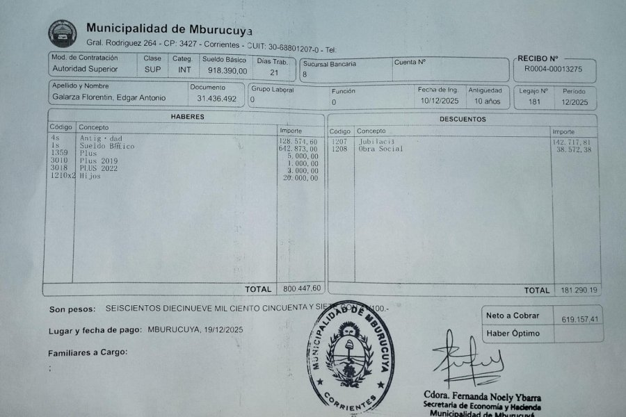 En medio de una crítica situación económica, el intendente de Mburucuyá, Edgar Galarza Florentín, tomó la decisión de reducir en más de la mitad su propio salario como parte de un paquete de medidas destinadas a ordenar las cuentas municipales y garantizar el pago de sueldos y servicios básicos.