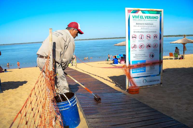 Los trabajos en las playas Arazaty I y II, incluyen mejoras en los accesos, rampas, sanitarios y pintura en general. Otras tareas complementarias continuarán las próximas semanas para optimizar los servicios a los bañistas.
