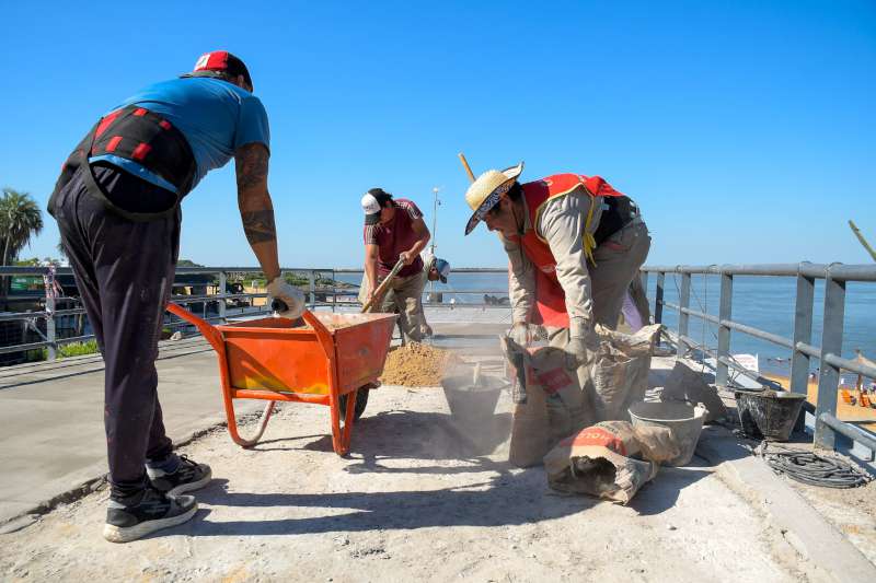 El secretario de Obras Públicas municipal, Sebastián Gómez De La Fuente, comentó que en la playa Arazaty I se realizó la recuperación integral de la losa de la terraza ubicada sobre el sector de baños, la cual fue impermeabilizada y acondicionada como azotea accesible, incluyendo la construcción de contrapiso y carpeta, y la ejecución de nuevas terminaciones con pintura para piso.