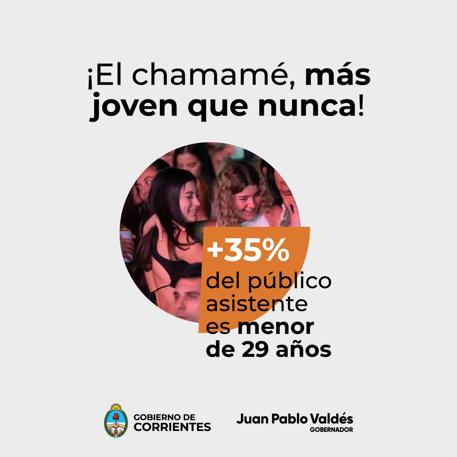 Pero el crecimiento no fue únicamente en cantidad, también cambió el perfil de quienes participaron. La 2026 fue, además, la fiesta con mayor presencia juvenil, ya que más del 35% del público no superó los 29 años. Un dato que marca la renovación generacional y refuerza que el Chamamé continúa ganando espacio entre nuevas audiencias.