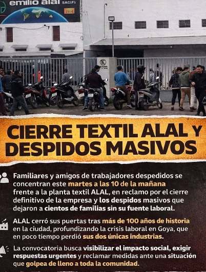 El cierre de la histórica textil Emilio Alal sacudió de lleno a la economía local de Goya con una decisión empresarial que dejó a más de 260 trabajadores sin empleo y golpeó a cientos de familias que dependen directa o indirectamente del movimiento que generaba la planta.