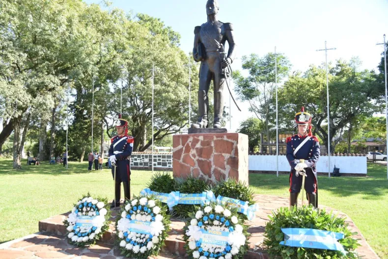 La jornada incluyó el depósito de ofrendas florales, momentos protocolares y culminó con el tradicional desfile cívico-militar, en el que participaron instituciones educativas, fuerzas de seguridad y agrupaciones tradicionalistas.