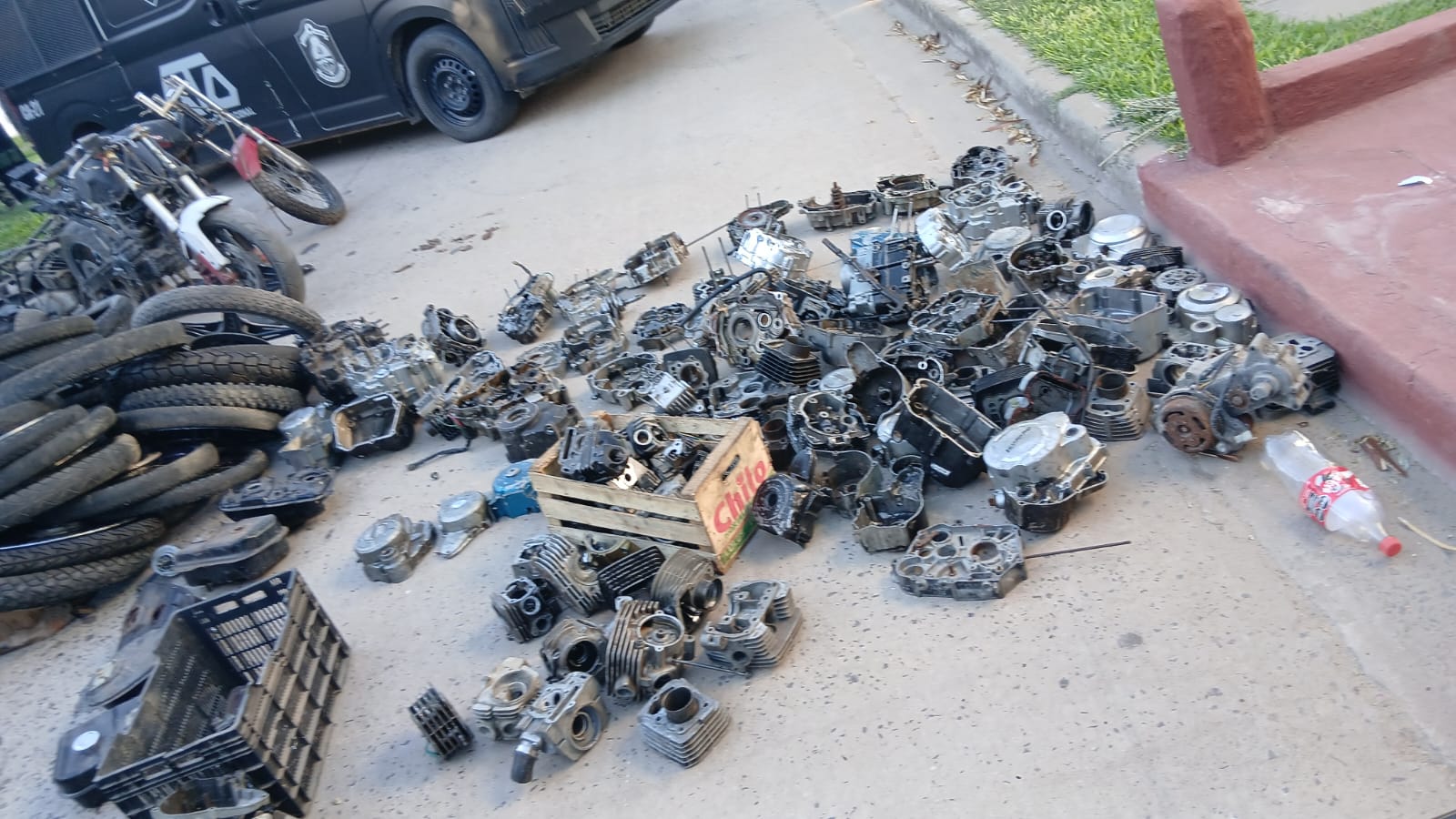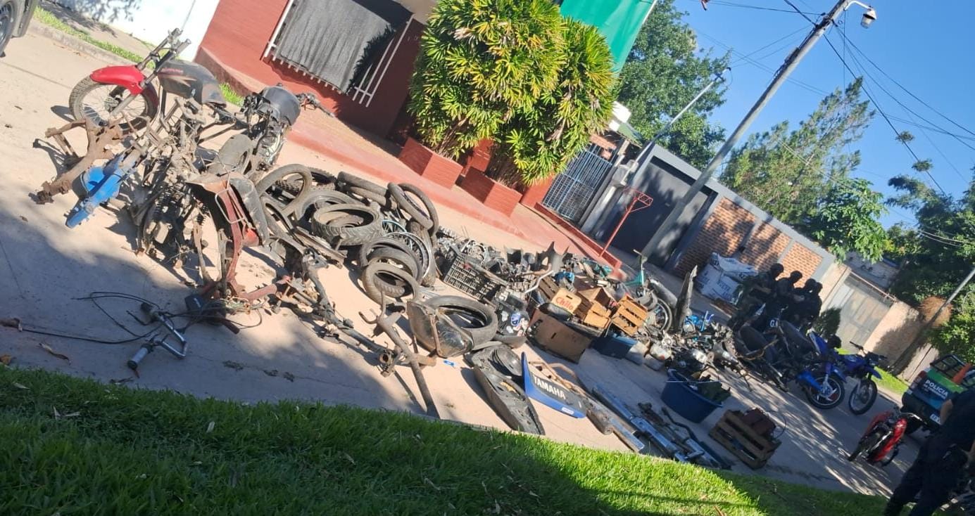 Al ingresar al lugar, los uniformados constataron la existencia de numerosas motocicletas y piezas desarmadas, configurando lo que sería un desarmadero clandestino.