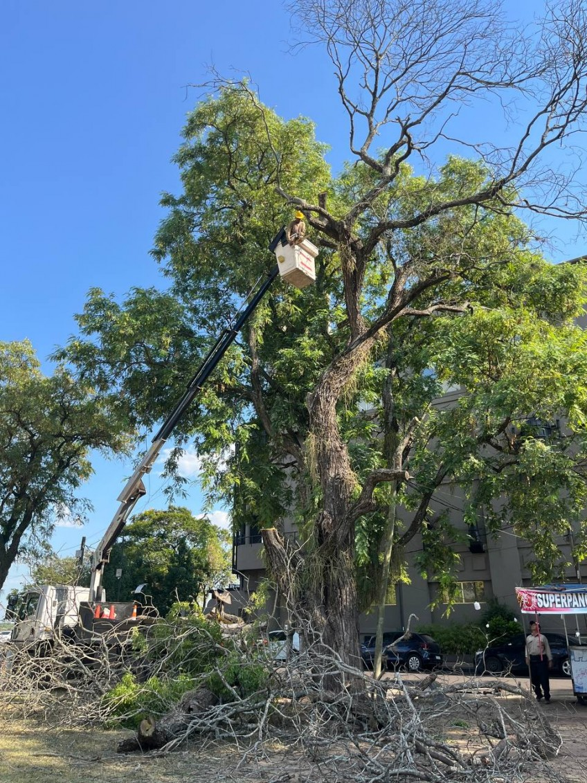 Las tareas forman parte del plan municipal de mantenimiento del arbolado urbano y prevención de riesgos, con el objetivo de preservar los espacios públicos y garantizar la seguridad de quienes los utilizan diariamente.