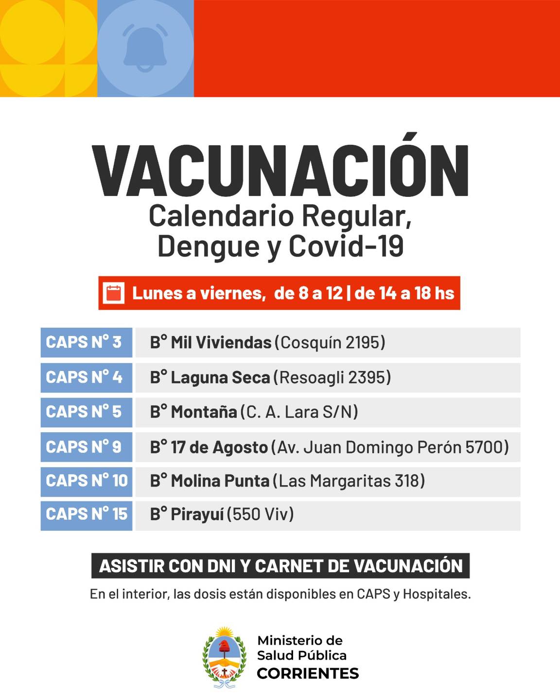 Cronograma Calendario/Dengue/Covid-19 Capital – Puntos de vacunación