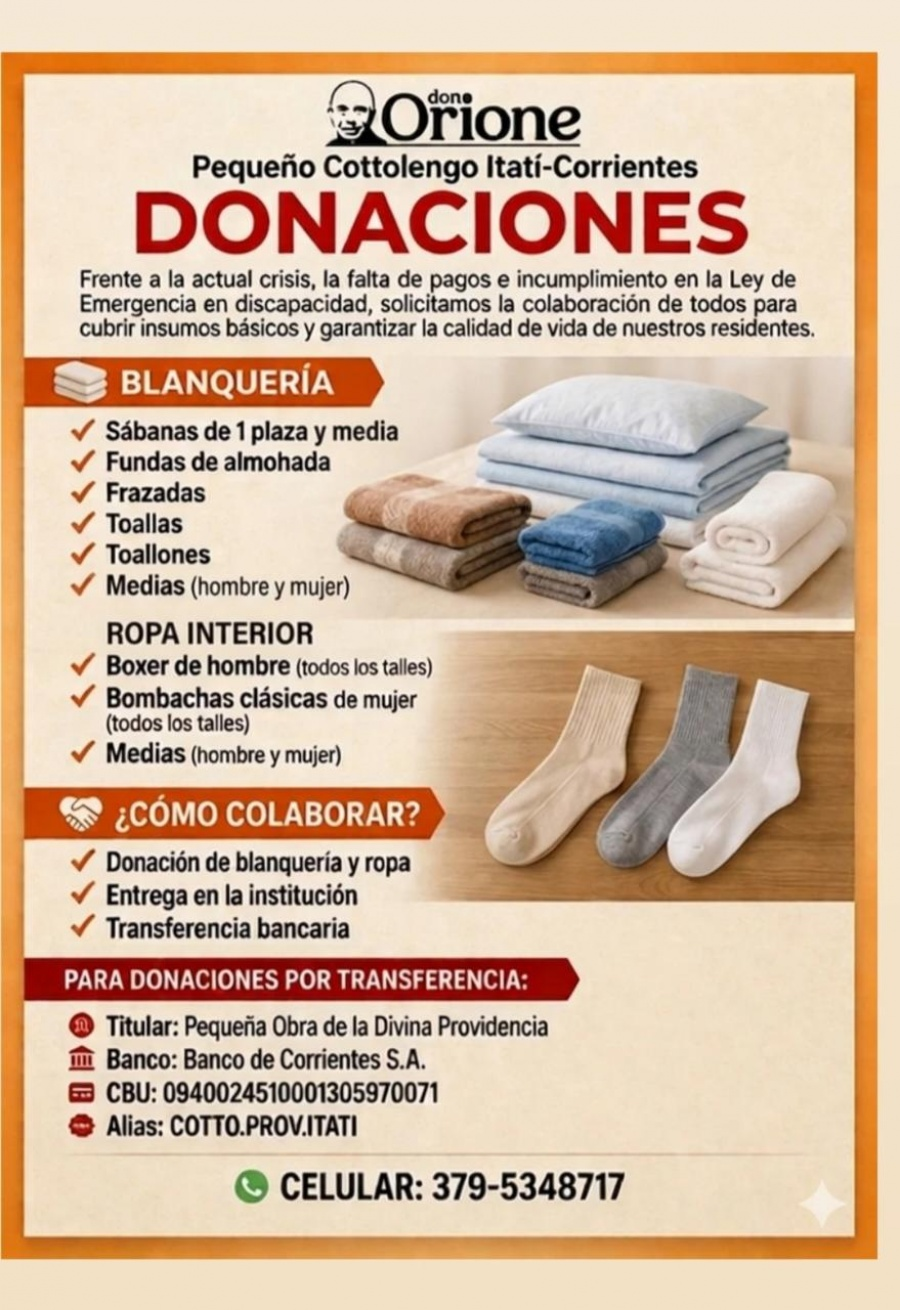 Mientras tanto, desde el Cottolengo apelan a la solidaridad de la comunidad para sostener el funcionamiento diario.
