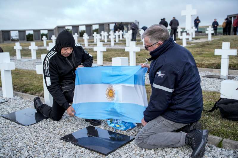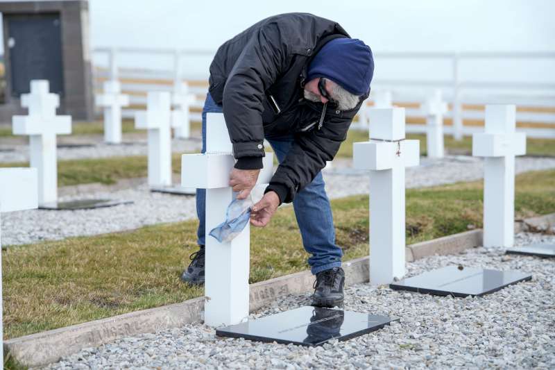 Los héroes correntinos que partieron el viernes pudieron arribar a las Islas el lunes, por condiciones climáticas que retrasaron el vuelo desde el continente. Ayer visitaron el cementerio de Darwin.