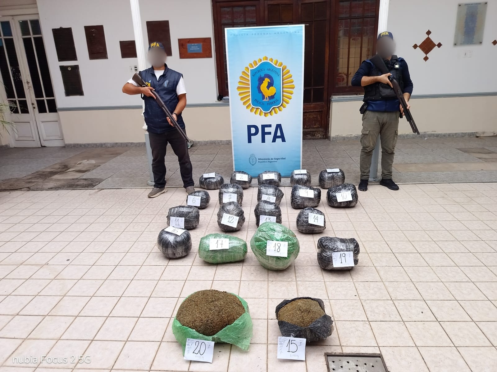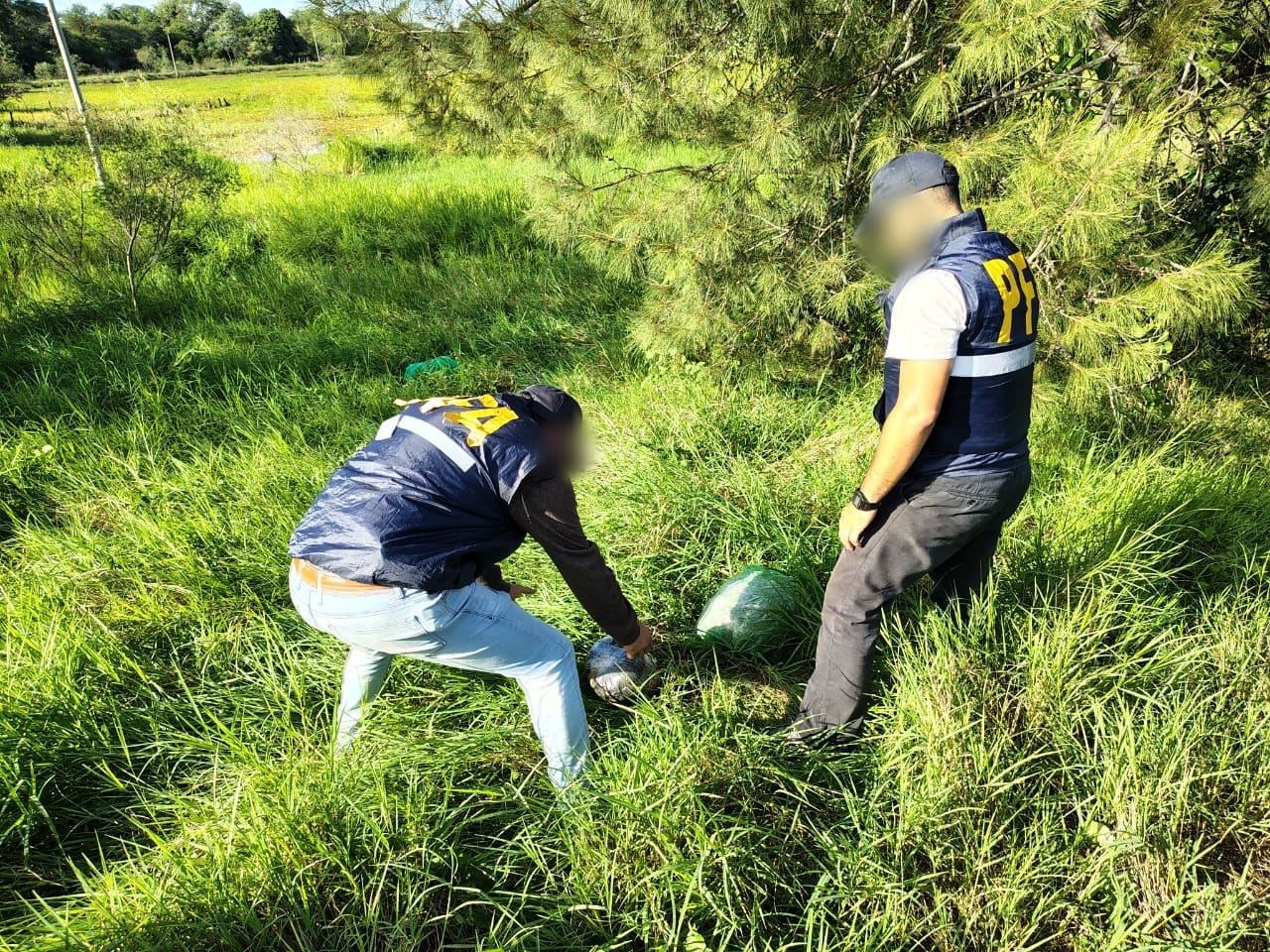 Con la información recabada, los efectivos federales desplegaron un rastrillaje en inmediaciones de la ruta, logrando localizar 20 paquetes ocultos entre la vegetación.
