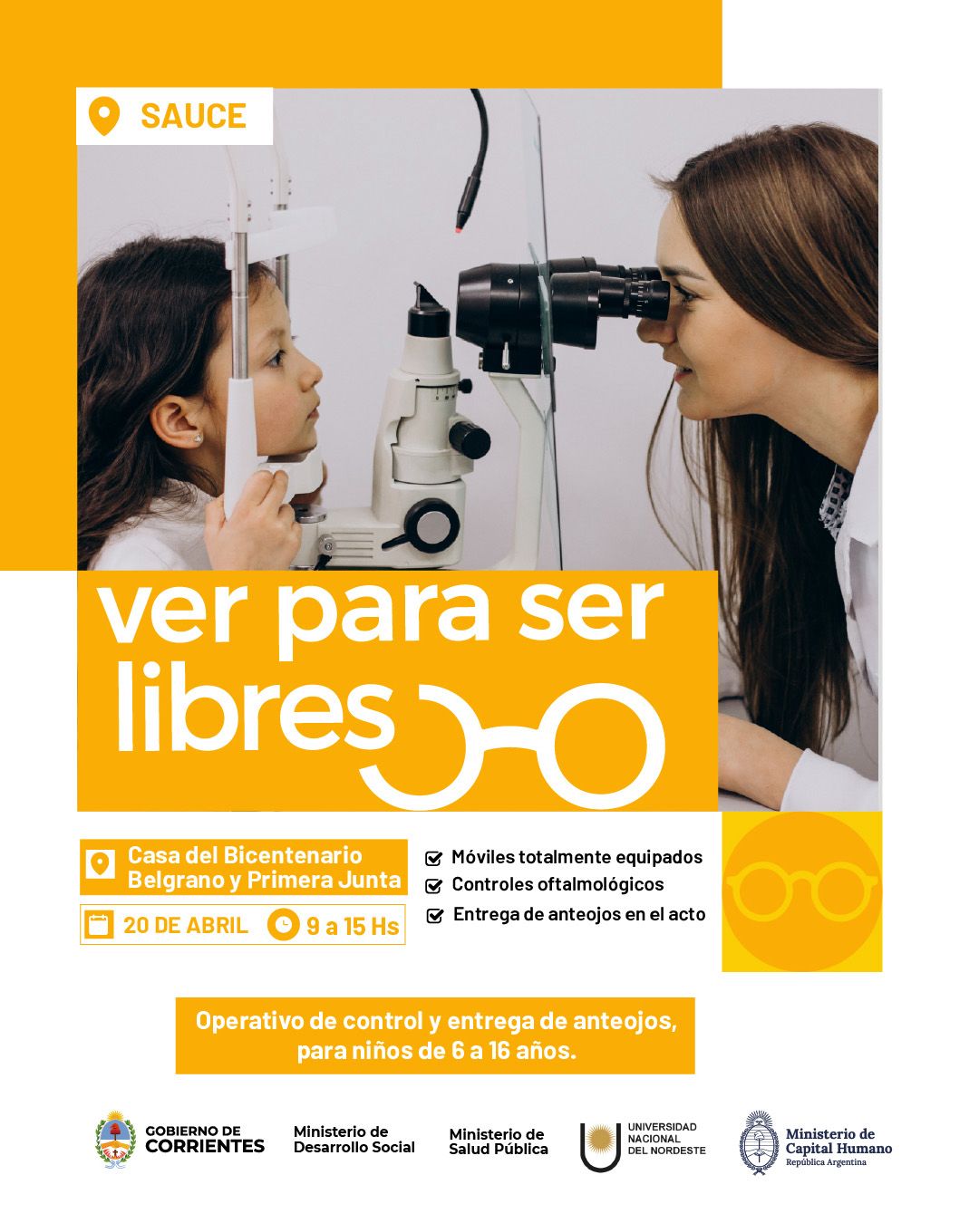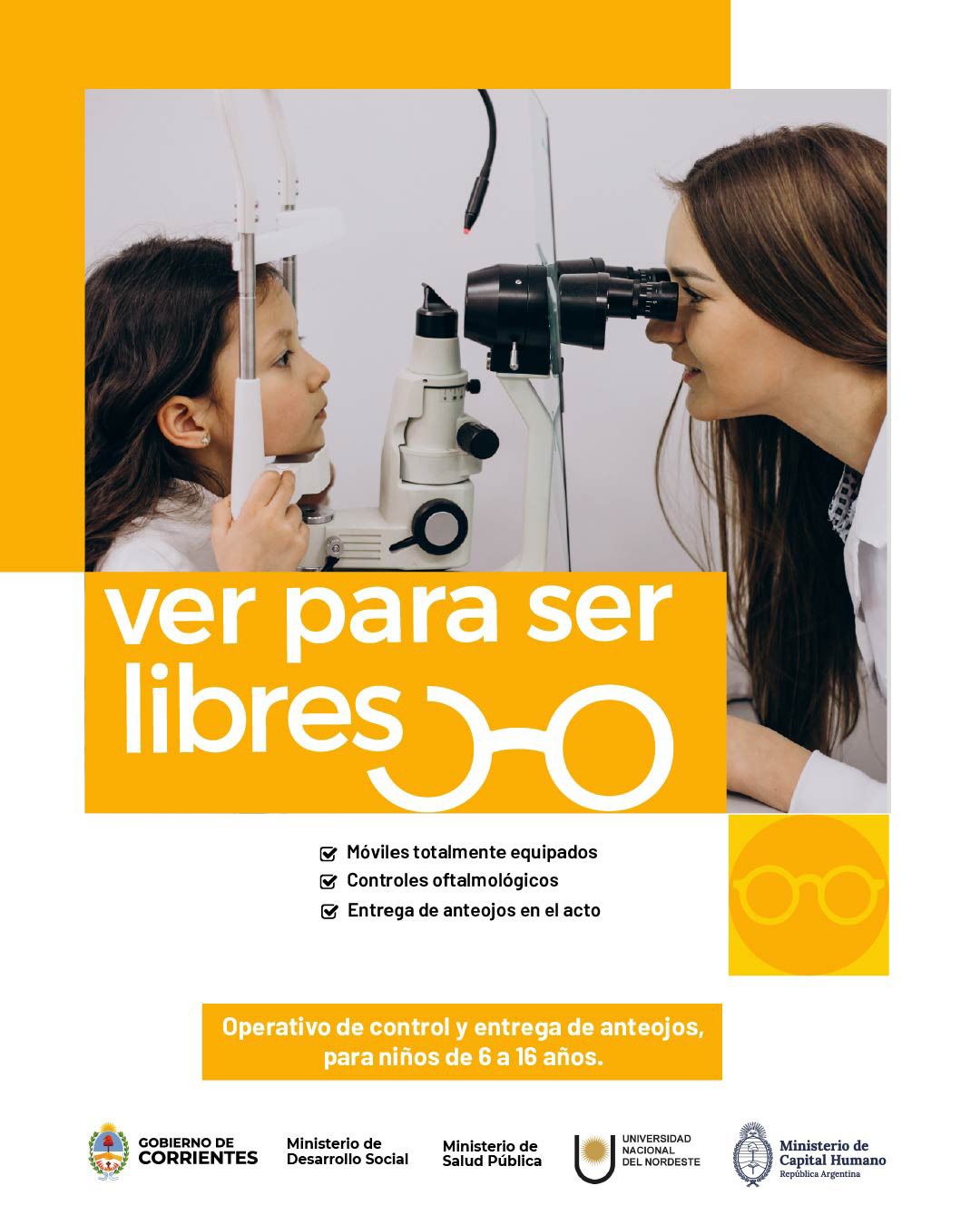 A través del programa Ver para Ser Libres, el Ministerio de Desarrollo Social de la Provincia y el Ministerio de Capital Humano de la Nación llevarán a cabo atenciones oftalmológicas, elaboración y entrega de anteojos para niños de 6 a 16 años en casi una veintena de localidades. Con el apoyo del Ministerio de Salud y la Universidad Nacional del Nordeste, el programa apunta a mejorar y cuidar la salud visual de la población.