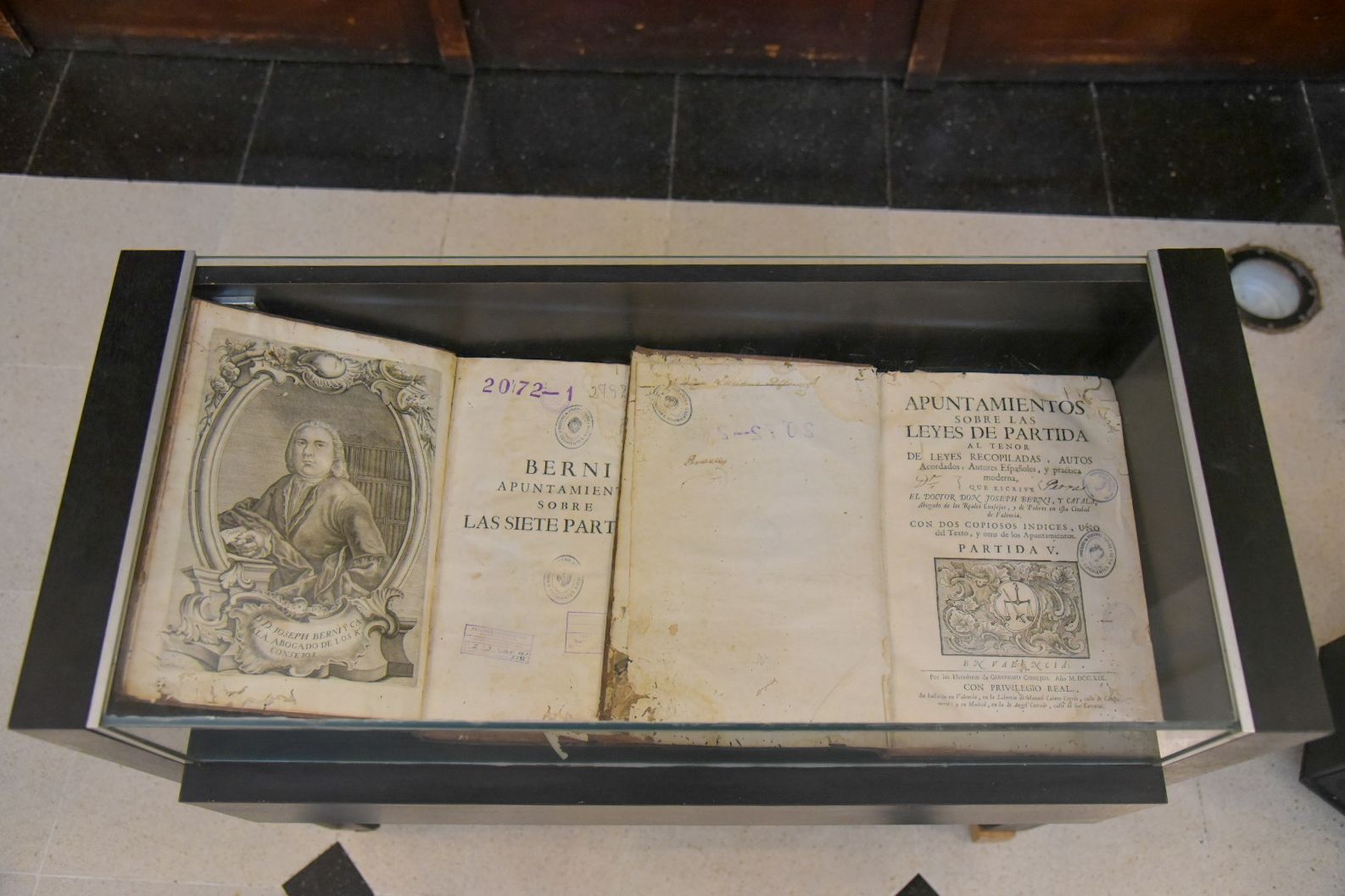Posteriormente, el personal de la Biblioteca, guiado por su director Walter Fernández, presentó las obras expuestas. Entre ellas se destacan “Las Siete Partidas”, un cuerpo normativo redactado por el rey Alfonso X entre 1256 y 1265, considerado uno de los textos jurídicos más relevantes de la historia del Derecho. Los tomos exhibidos datan de entre 1867 y 1880, y constituyen piezas de gran valor histórico para el patrimonio institucional.