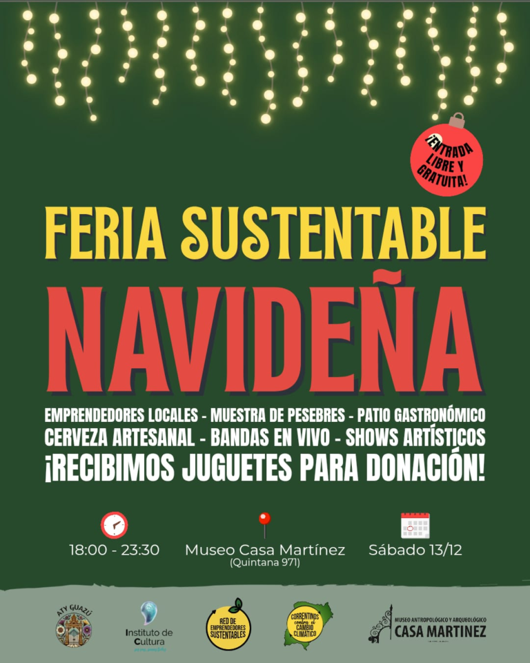 Este sábado 13 se realizará la Feria Sustentable – Edición Navidad, la última edición del año, en el Museo Casa Martínez, de 18:00 a 23:30, con entrada libre y gratuita. [...]